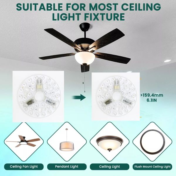 ERP Rosh LED Modules 5CCT 12W/18W/24W DIP Switch Ceiling Light Fan with Witch Power Replaces LED Module